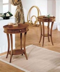 Tavolino In Stile Piano Tondo Con Cassetto In Legno Di Noce Idfdesign