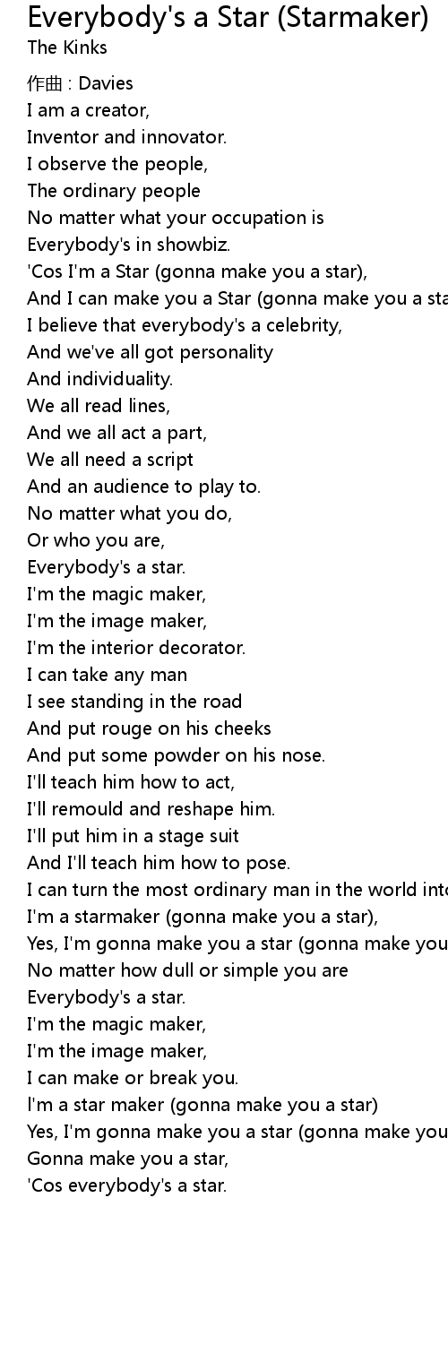 Everybody S A Star Starmaker Lyrics Follow Lyrics