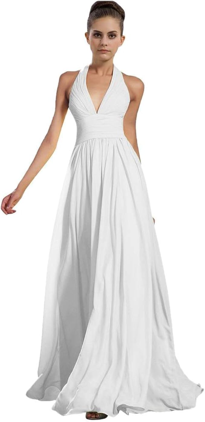 Women S Bridesmaids Formal Chiffon Wedding Prom Dress Sleeveless V Neck Halter Long Dress Girls Cocktail Evening Party Gowns A Line Swing Maxi Dress White Uk 10 Amazon Co Uk Clothing